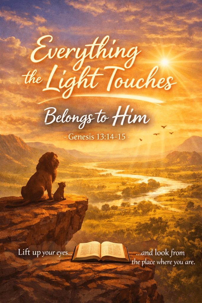 I was sitting quietly, typing Scripture as part of my goal to type out the entire Bible, when I came across Genesis 13:14-15. As I read God’s promise to Abram, something unexpected happened. My mind immediately jumped to The Lion King and that familiar scene where Mufasa tells Simba that his kingdom will be “everything the light touches.”